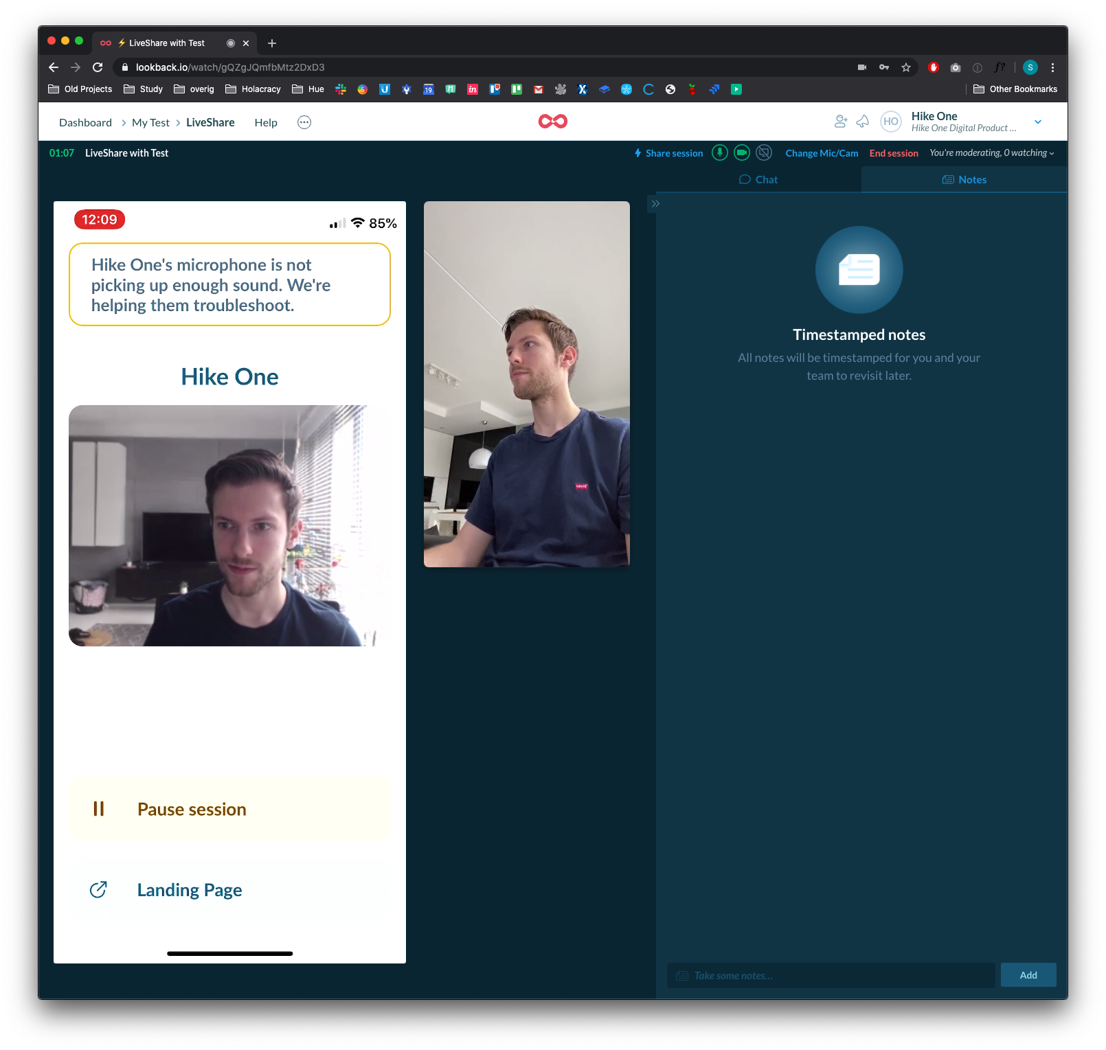 Allow for time on your project to do a tech check. During this check you can make sure the participant is able to use Lookback on their phone without any technical issues. It's recommended to do a test call via Lookback.