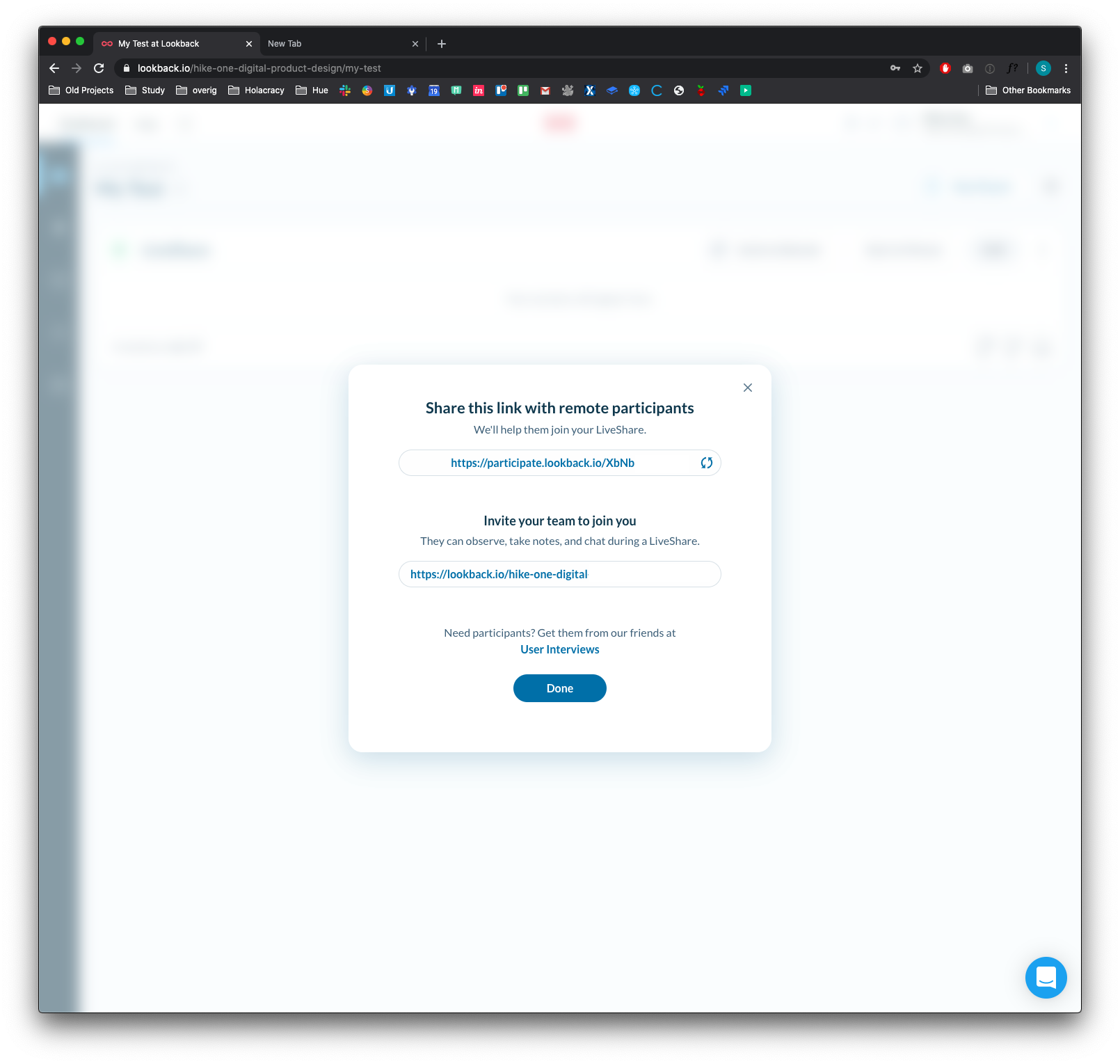 If you're testing on mobile make sure your users have the Participate app by Lookback installed on their phone first and then open the link. It should open up in the Participate app. They should follow the on-screen instructions to give the app all permissions. On desktop the user will be prompted to install the Participate browser extension. Lookback works best on Google Chrome.