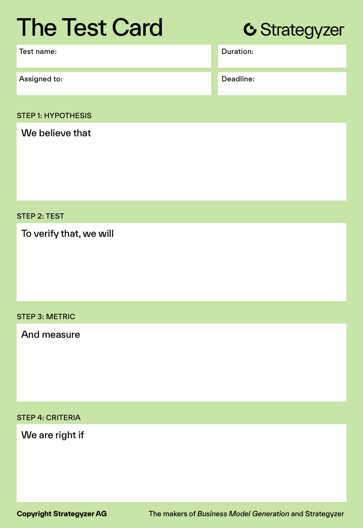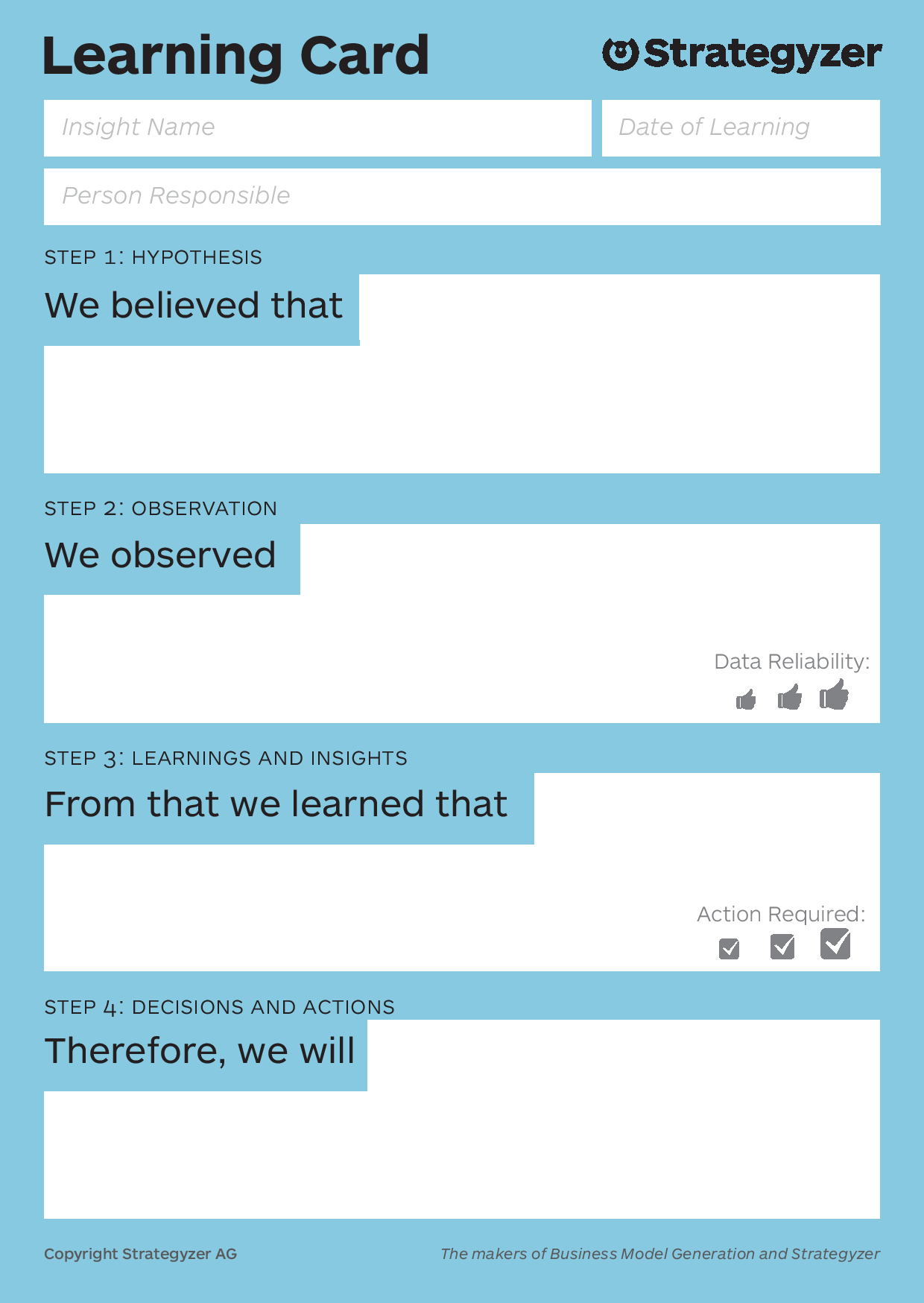 After having executed the experiment, the assigned person(s) can use the learnings card to report on the evidence that was gathered.