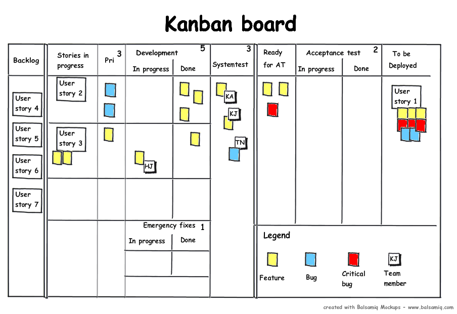 Kanban dictates that since an individual can only focus on X amount of work and studies even showed that the more items in the to do per person the less effective this person is. Therefore Kanban encourages you to set a limit to the items in a certain lane. One major result of the limit it that very soon bottlenecks are starting to show.